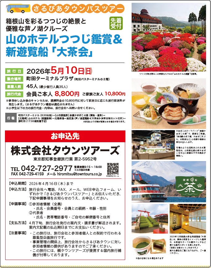 会報誌さるびあタウン春号P8掲載 日帰りバスツアー 現在お申込人数に余裕あります!